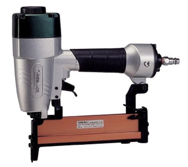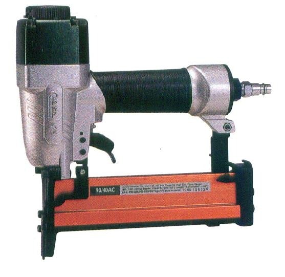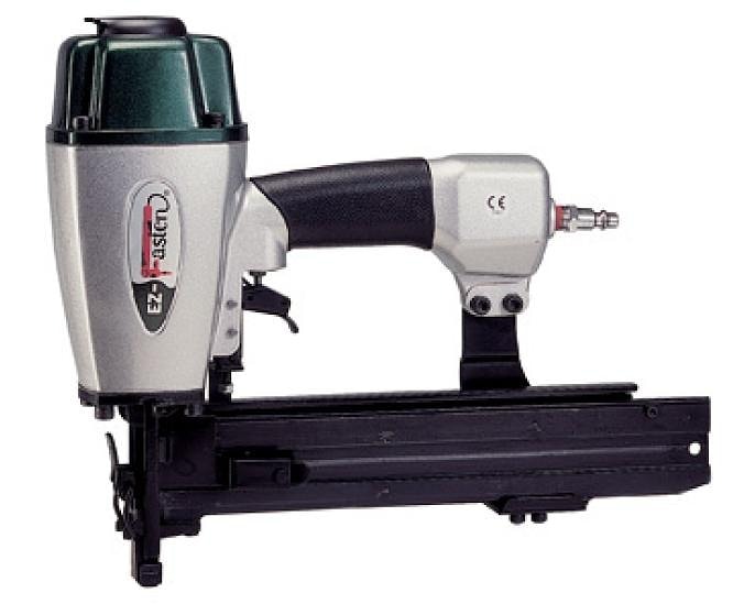 | Пневмопистолет EZ-Fasten NS90/40AC Тип скобы: тип 90 (E) Размер скобы: сечение 1,25x1,00 мм/ ширина 5,8 мм/ длина 16-40 мм Рабочее давление: 5 – 7 (макс.) Бар. Потребление воздуха: 1,0 литра / 6 Бар. Поступление воздуха (отверстие): 1/4". Размеры: 317×72×258 мм. Вес: 1,78 кг. | Для сбивания деревянного бруса, фанеры, мдф, дсп и др. при производстве мебельных каркасов, изготовлении тары, упаковки. | ![]() |